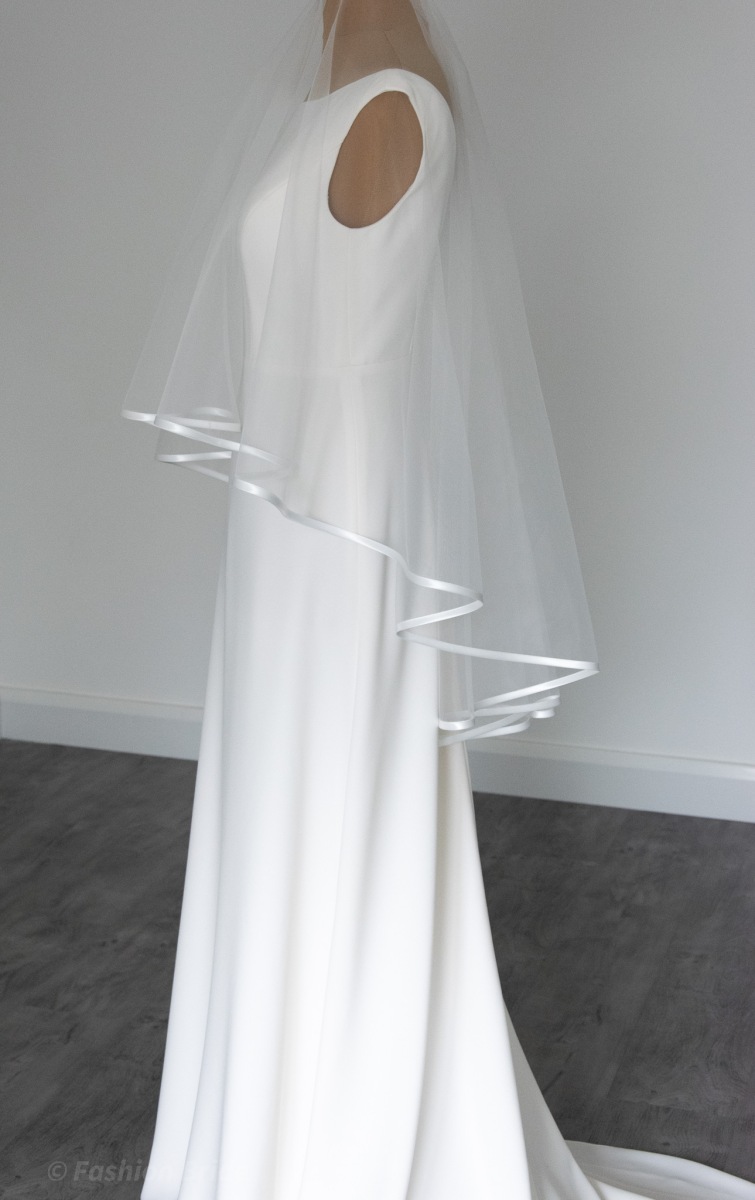 The width affects how full the veil looks. We have veils 280cm, 260cm, 210 cm and 150 cm width. To customize the width of your veil contact us fashionbrideedinburgh@gmail.com