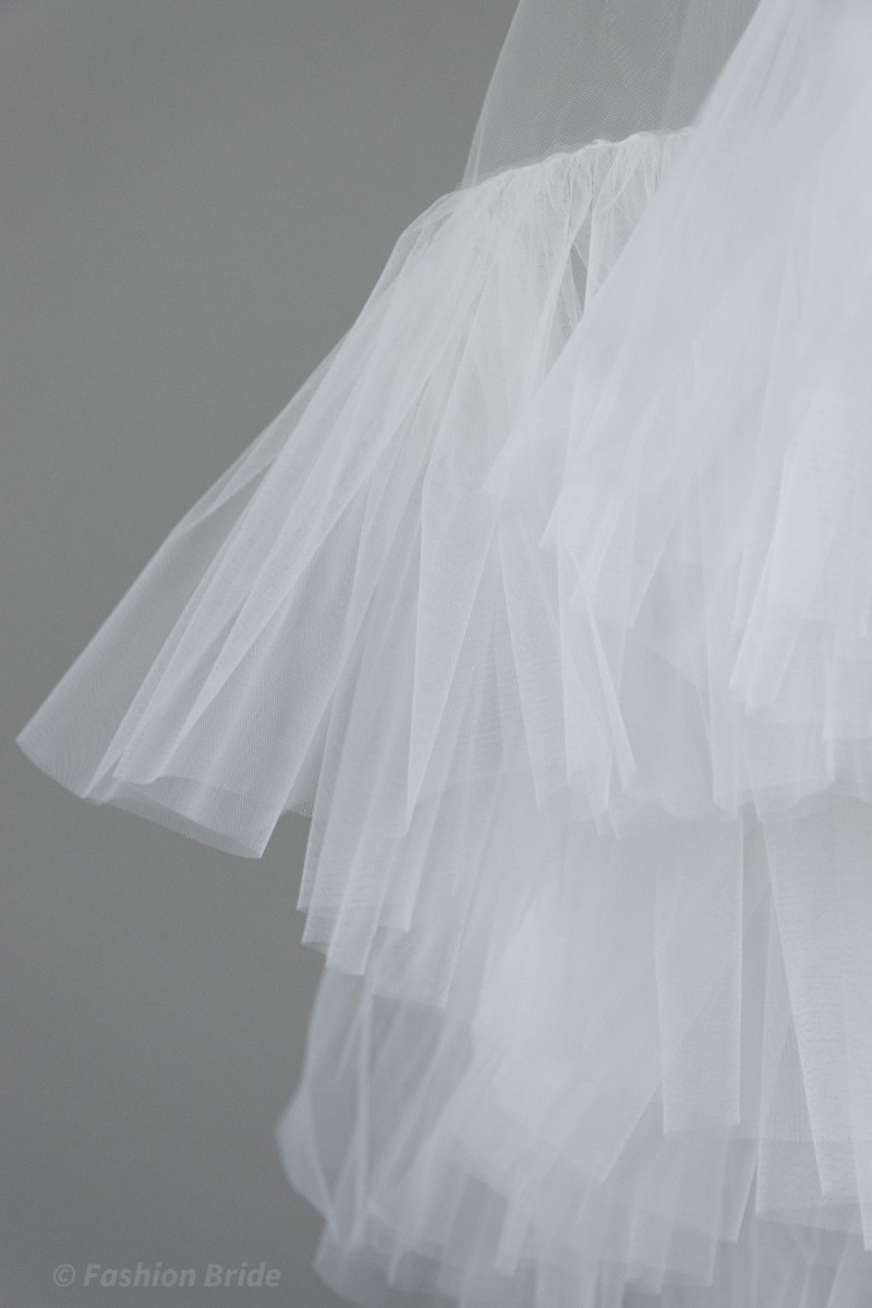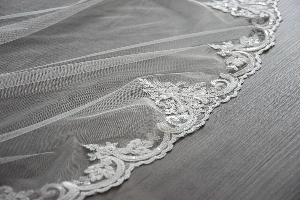 A two-tier wedding veil is the most traditional choice of brides, however, a single-tier veil is becoming increasingly popular. A lot of brides today are opting not to wear the veil over the face, but instead are wearing single layer veils at the back only.