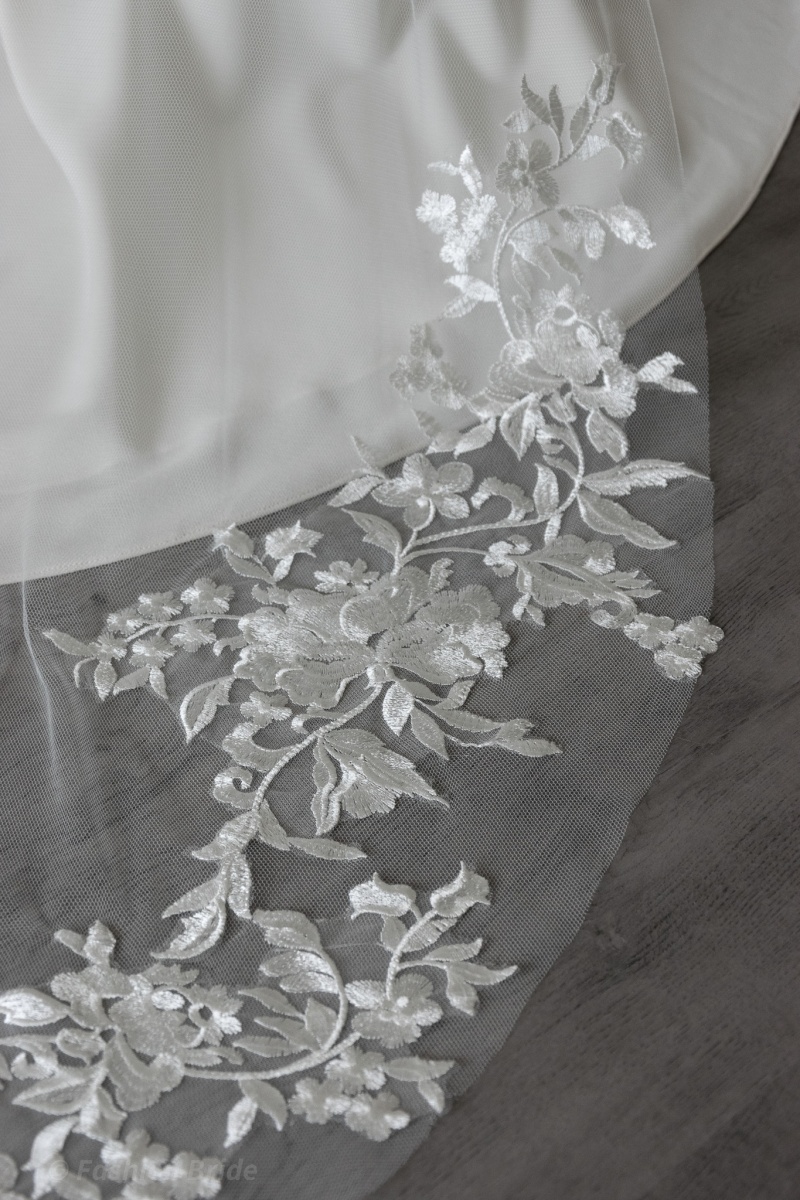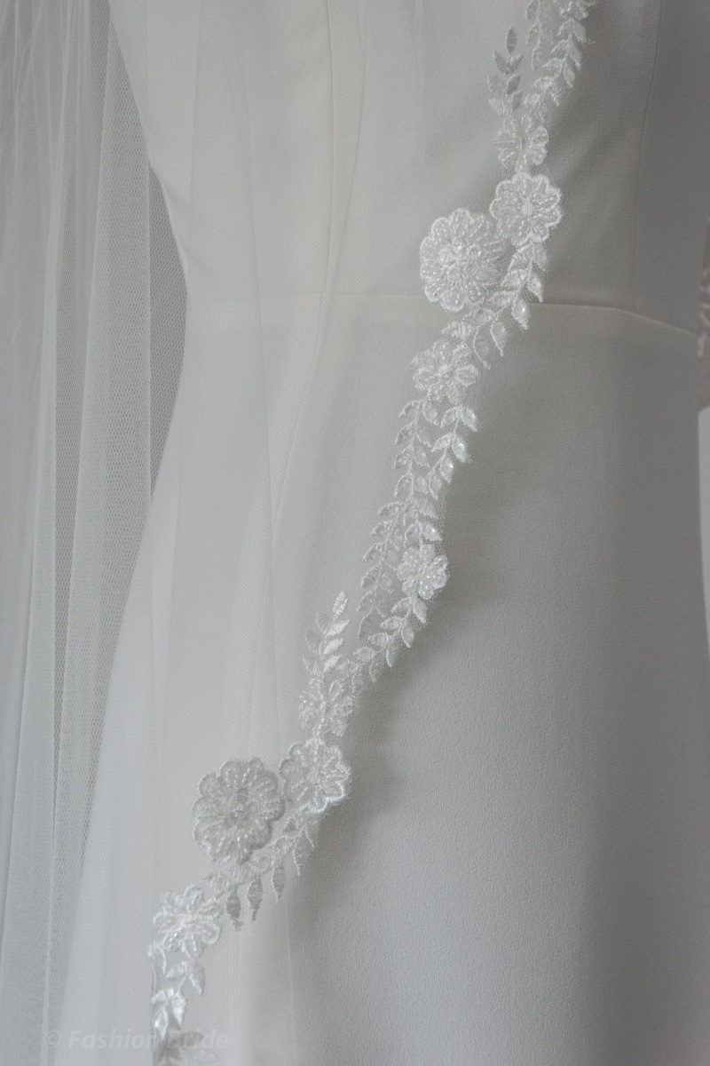 To match your dress and veil perfectly it is important to choose the right shade of colour. Many brides believe that the wedding dress is white, however, most of the dresses are in a light ivory colour. The most popular colours of the veil are White, Ivory, Cream, and Champagne. To customize the colour of your veil contact us fashionbrideedinburgh@gmail.com