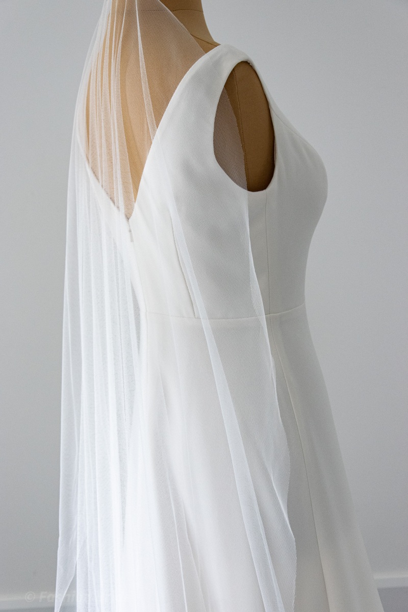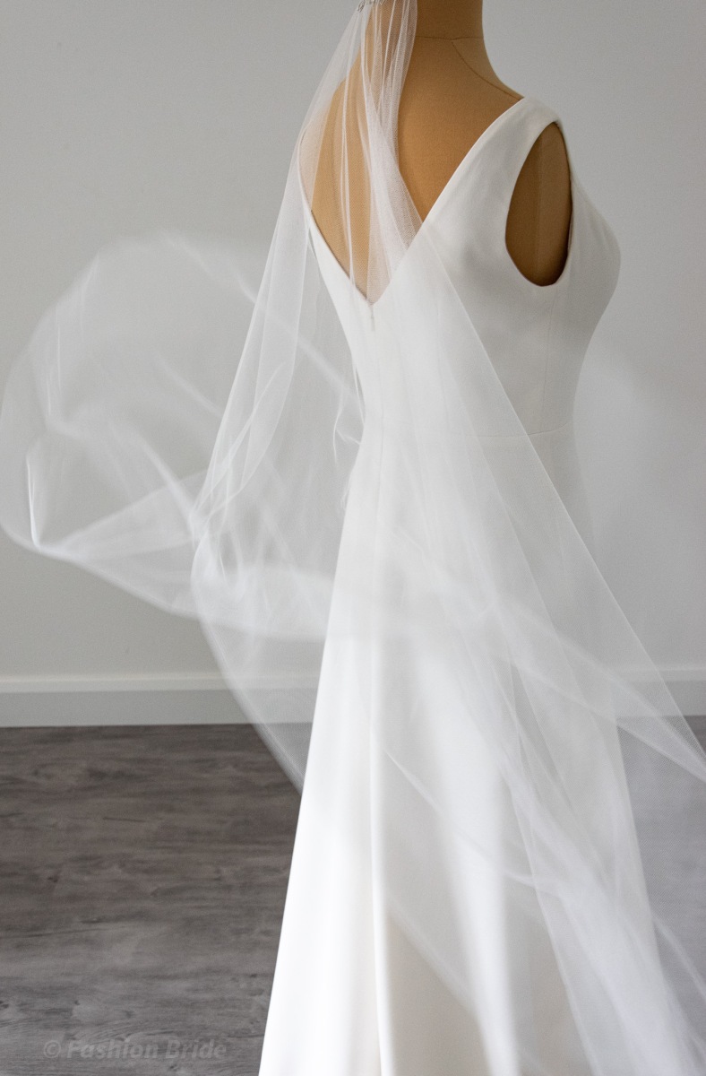 length: The design of the Veil is available in two most popular length 94”/ 240 cm Chapel Length Veil or 114” / 290 cm Cathedral Length Veil