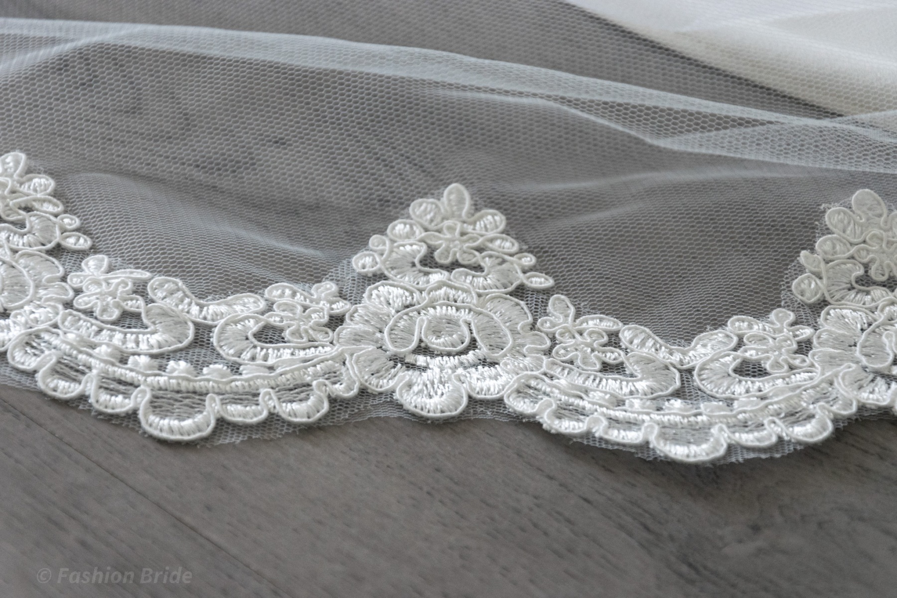 We can create your veil to your preferred length, width, shade, edge style. To customise your Veil, please contact us for bespoke options fashionbrideedinburgh@gmail.com.