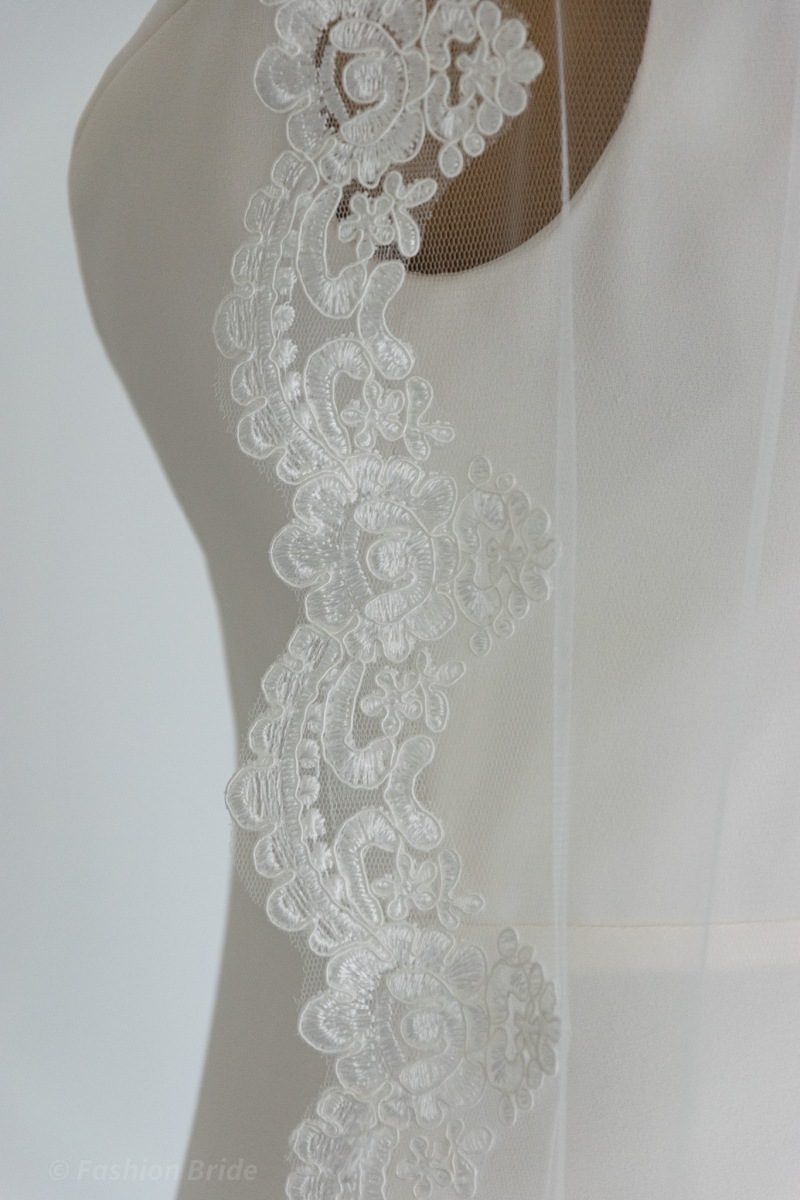 Description: Long Bridal tulle Veil with corded lace edge. The design of the Veil is available in Ivory and Cream colours. The width of the lace is 8 cm. The Veil is available in two most popular lengths Chapel Length and Cathedral Length.