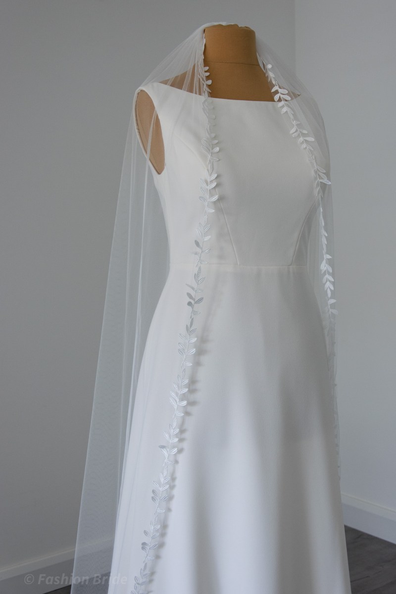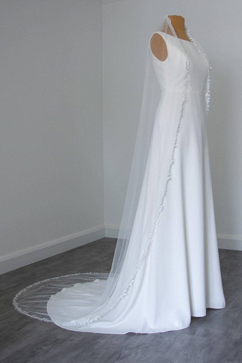 length: The design of the Veil is available in two most popular lengths 94”/ 240 cm Chapel Length Veil or 114” / 290 cm Cathedral Length Veil