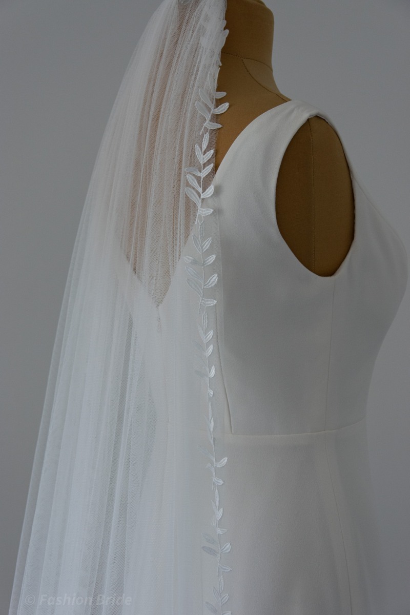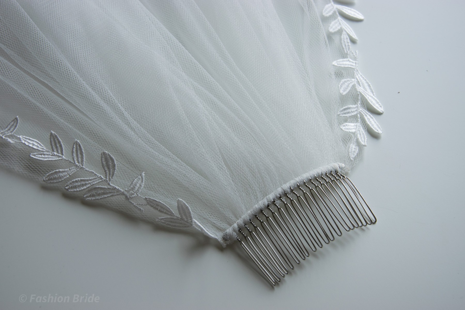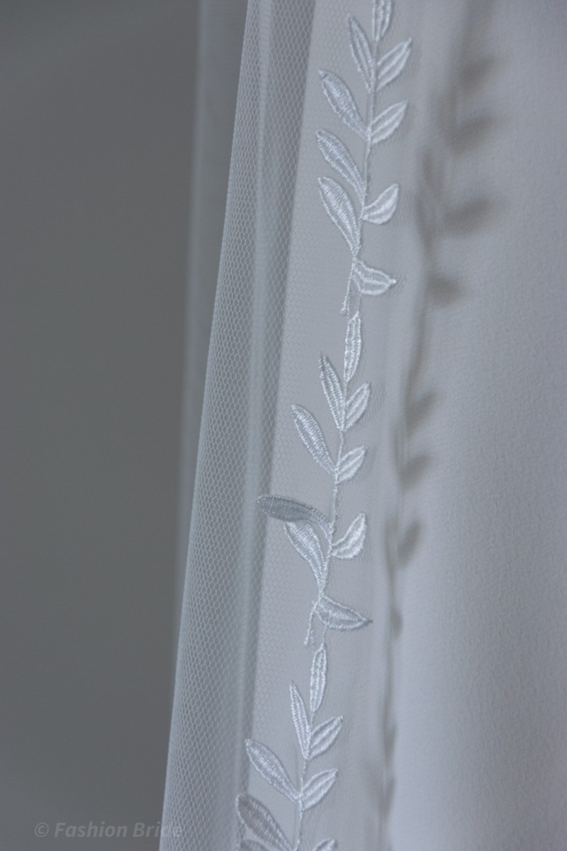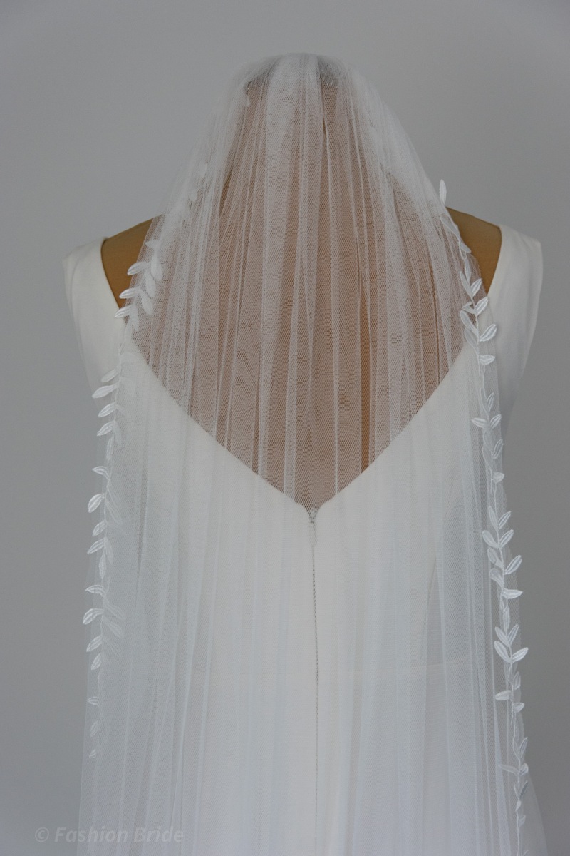 Description: Long Soft tulle single-layer veil with Leaf lace edge.
