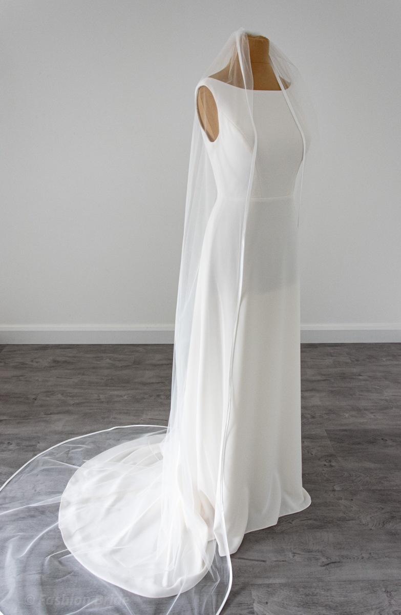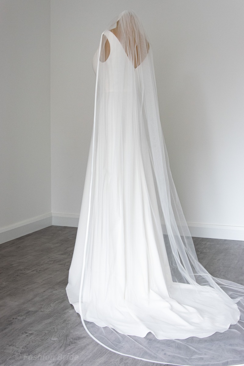 Description: Long tulle Veil one-tier with satin ribbon edge