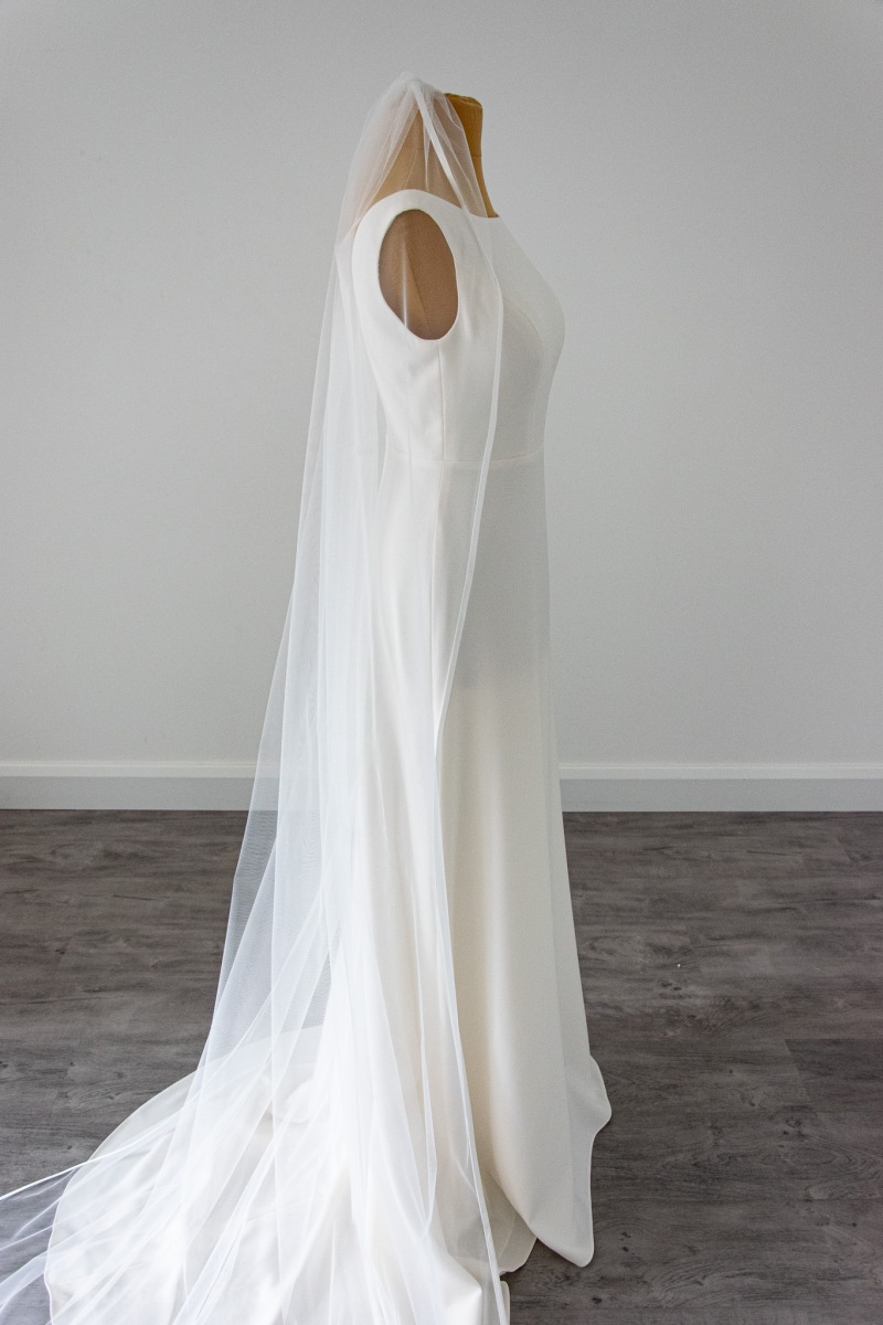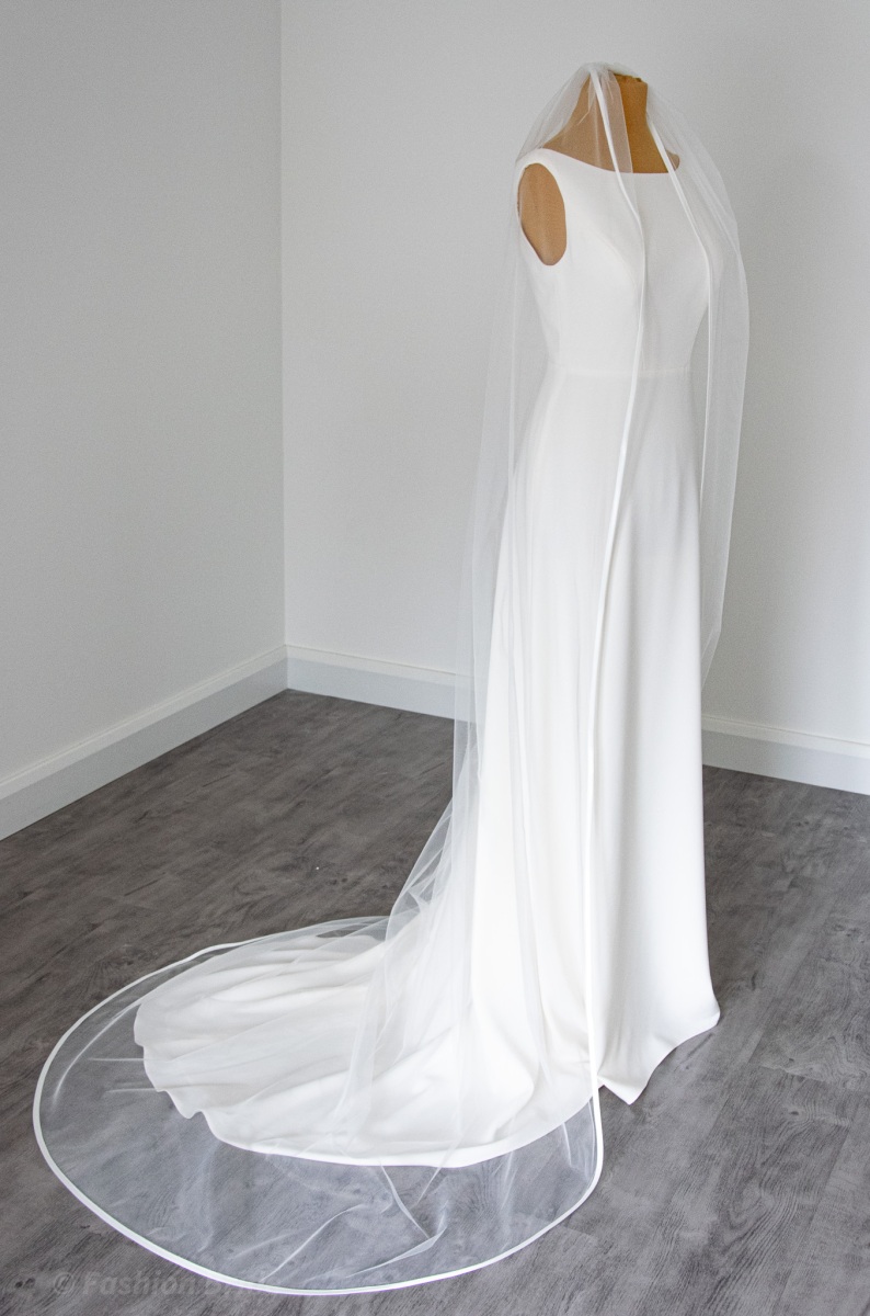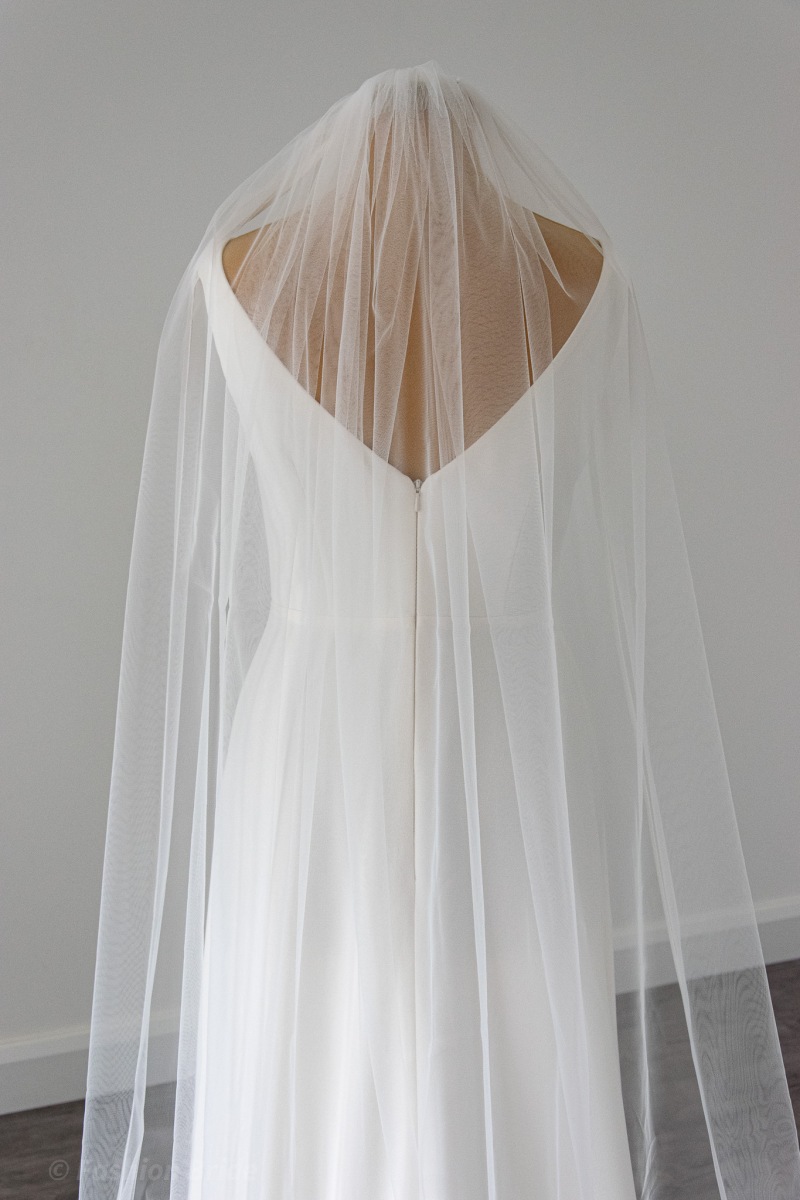 length: The design of the Veil is available in two most popular length 94”/ 240 cm Chapel Length Veil or 114” / 290 cm Cathedral Length Veil
