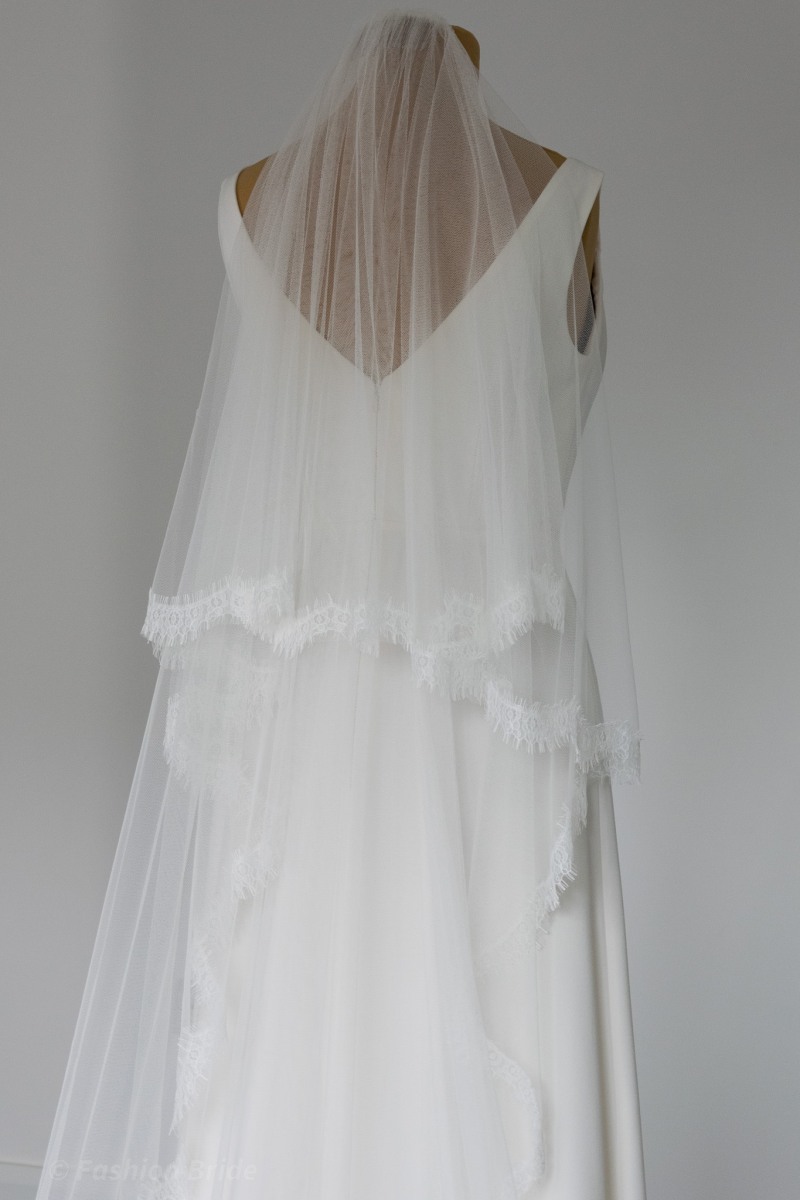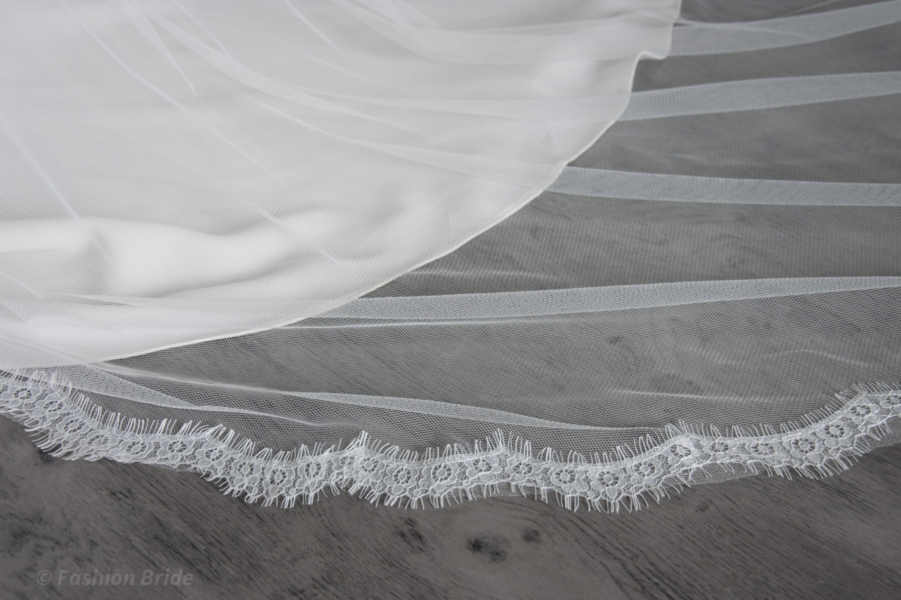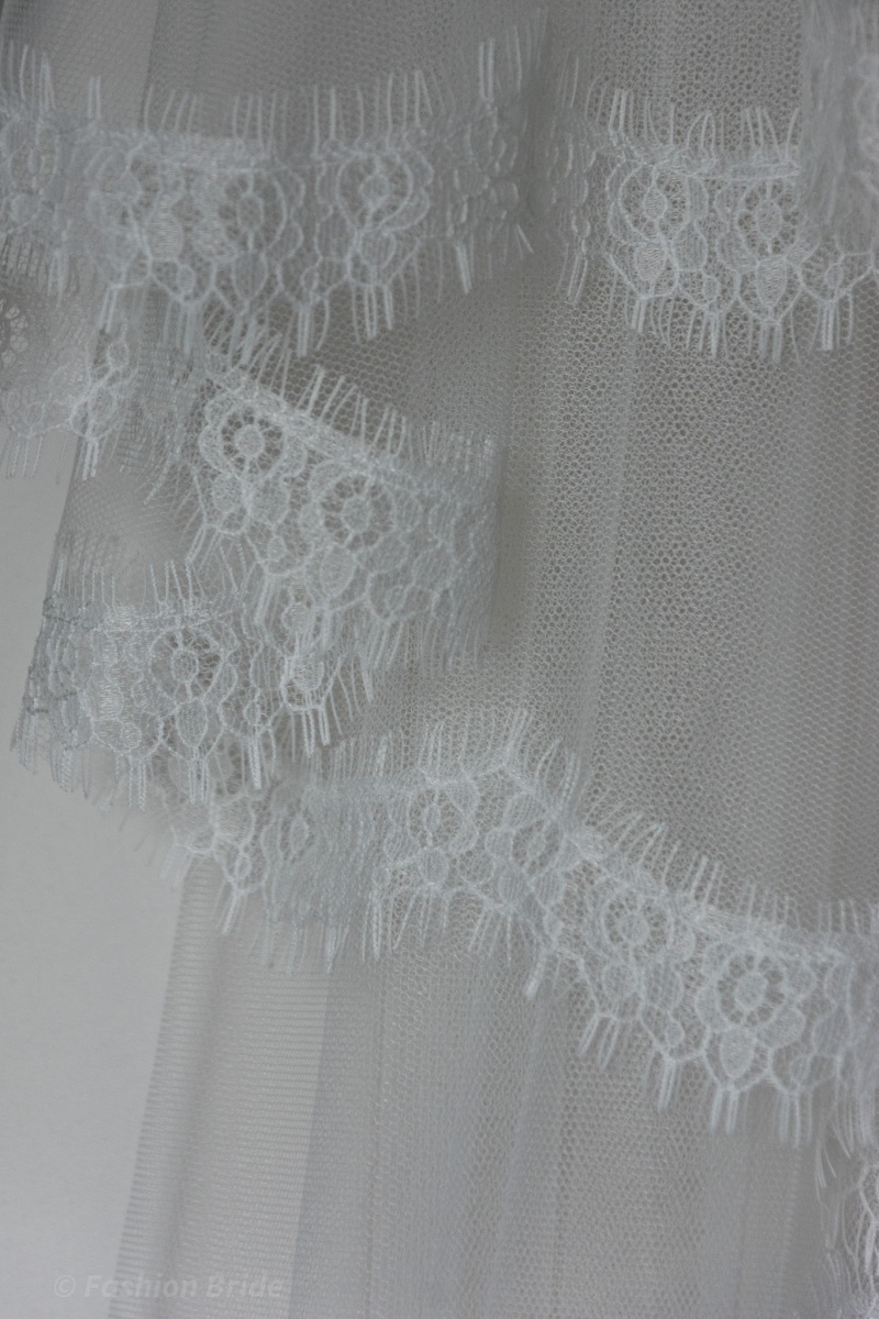 Description: Long two-tier soft tulle Veil with delicate lace. The lace width is 4 cm, Ivory colour.