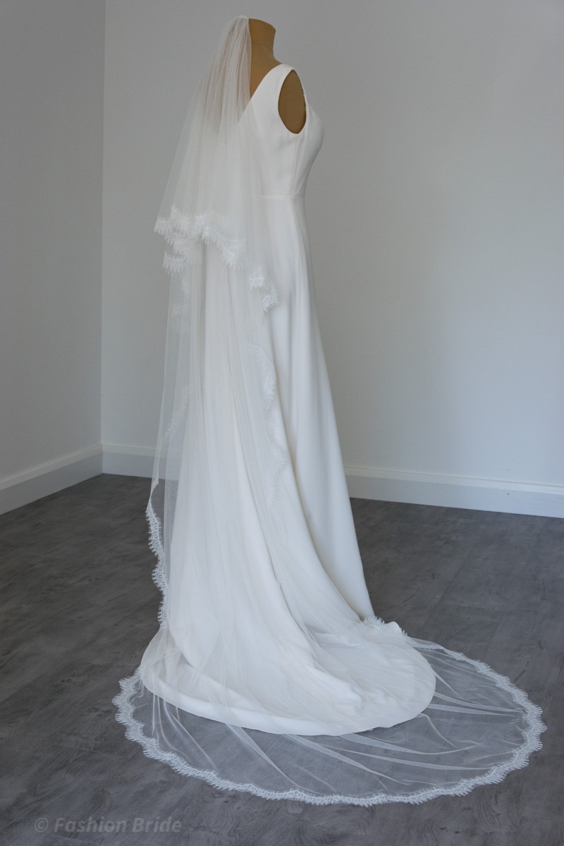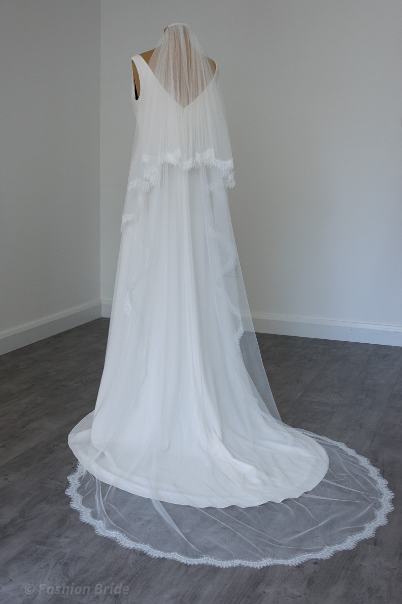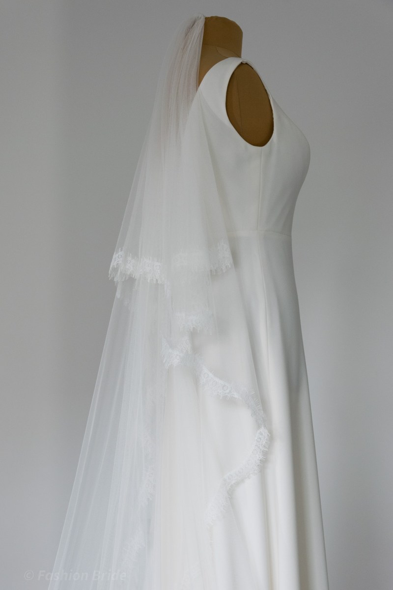 length: The design of the Veil is available in two most popular lengths 94”/ 240 cm Chapel Length Veil or 114” / 290 cm Cathedral Length Veil