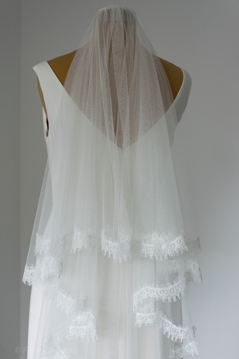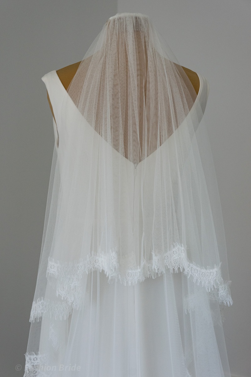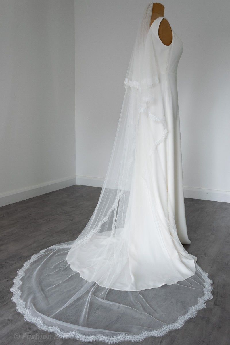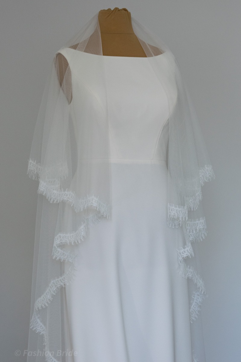 length: The design of the Veil is available in two most popular lengths 94”/ 240 cm Chapel Length Veil or 114” / 290 cm Cathedral Length Veil
