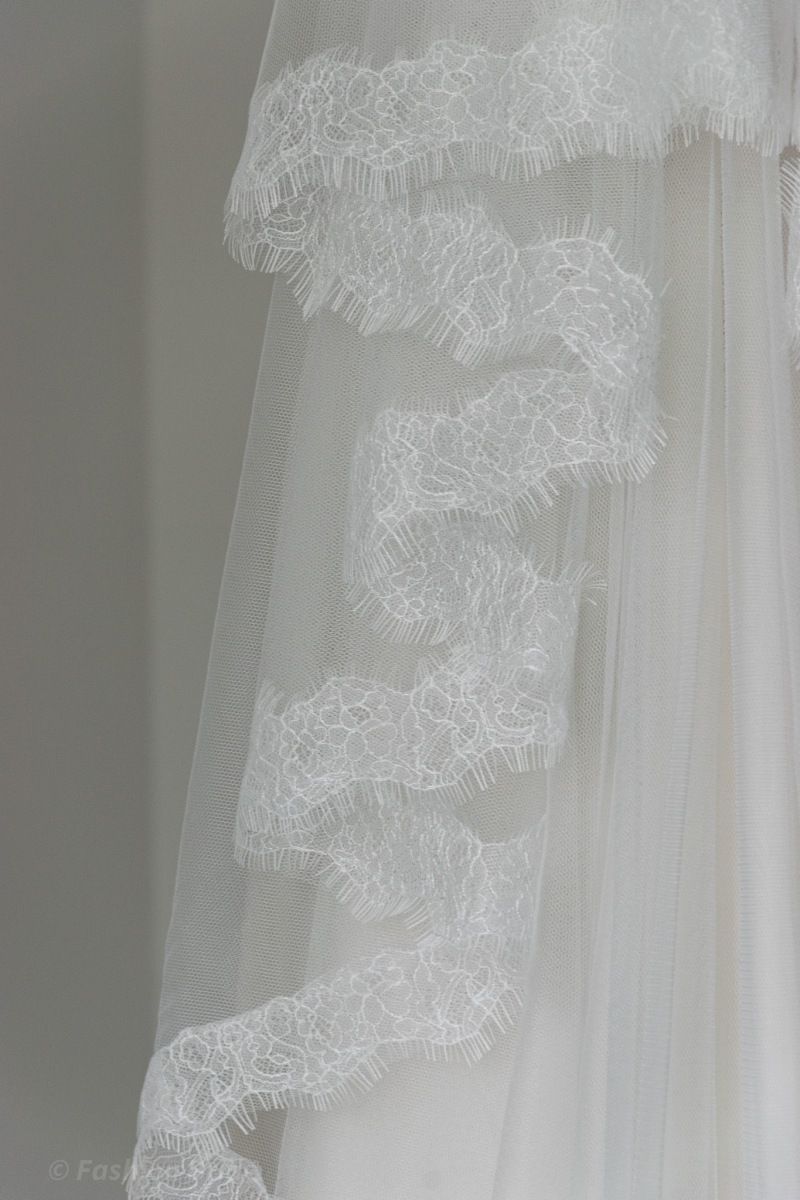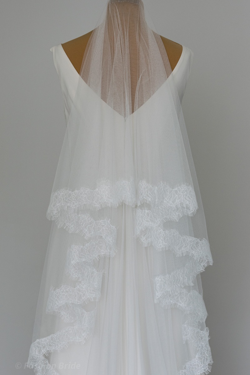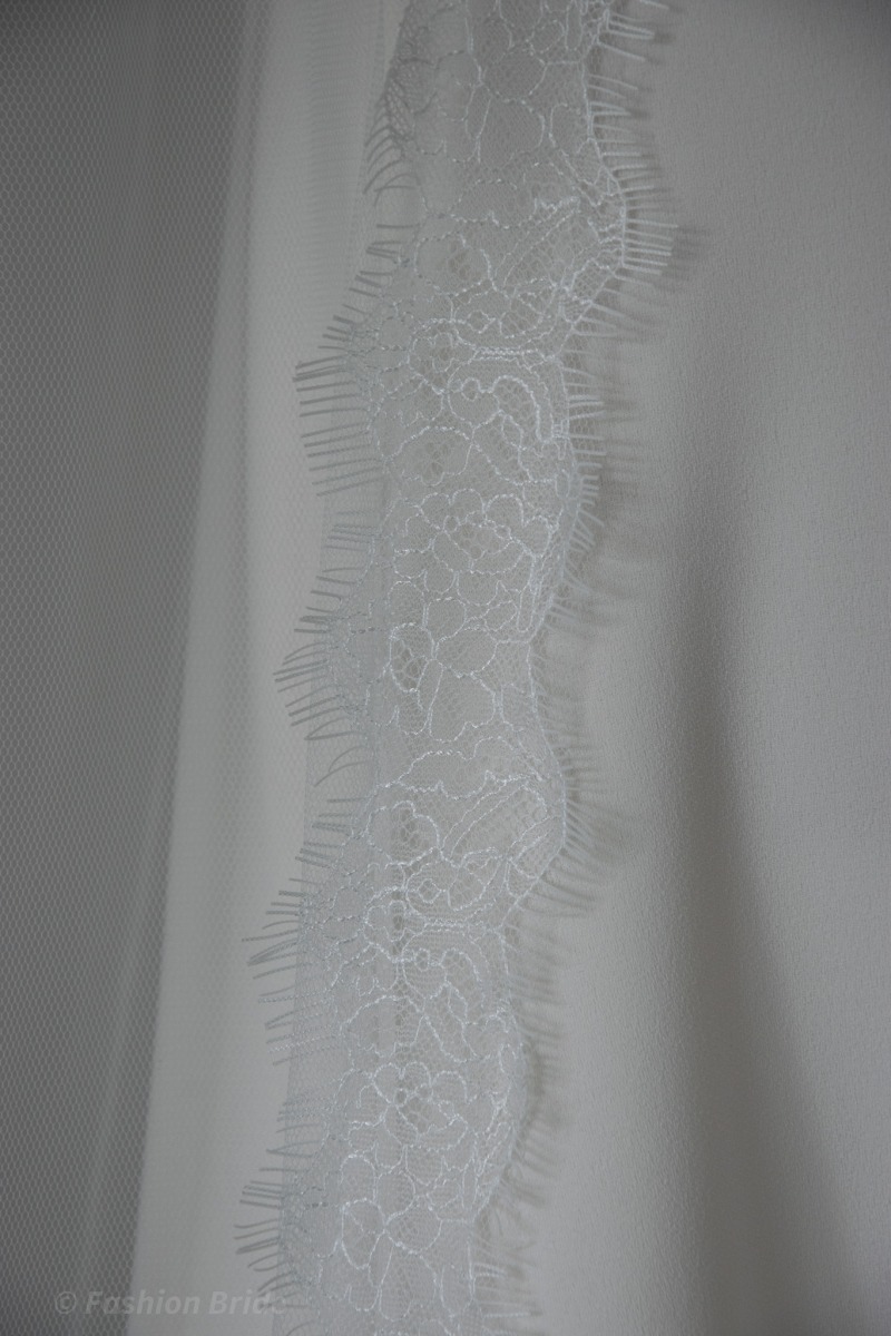 length: The design of the Veil is available in two most popular lengths 94”/ 240 cm Chapel Length Veil or 114” / 290 cm Cathedral Length Veil