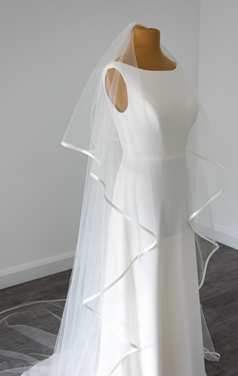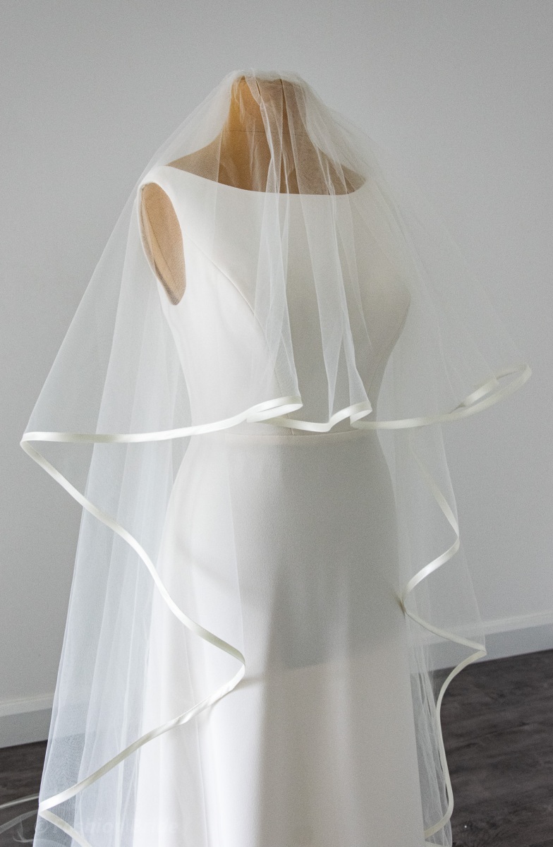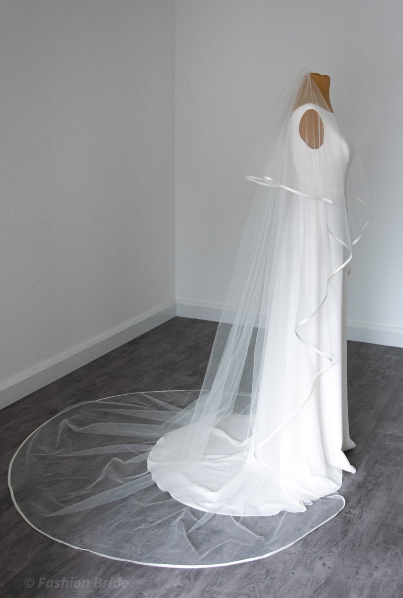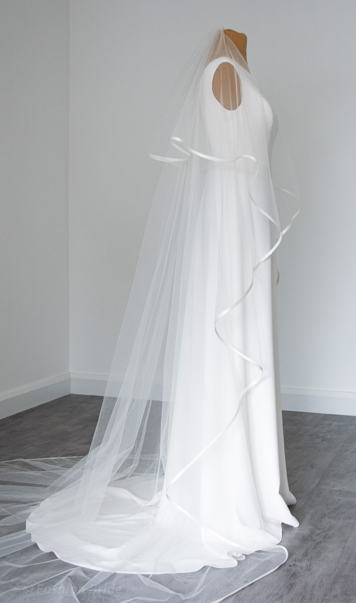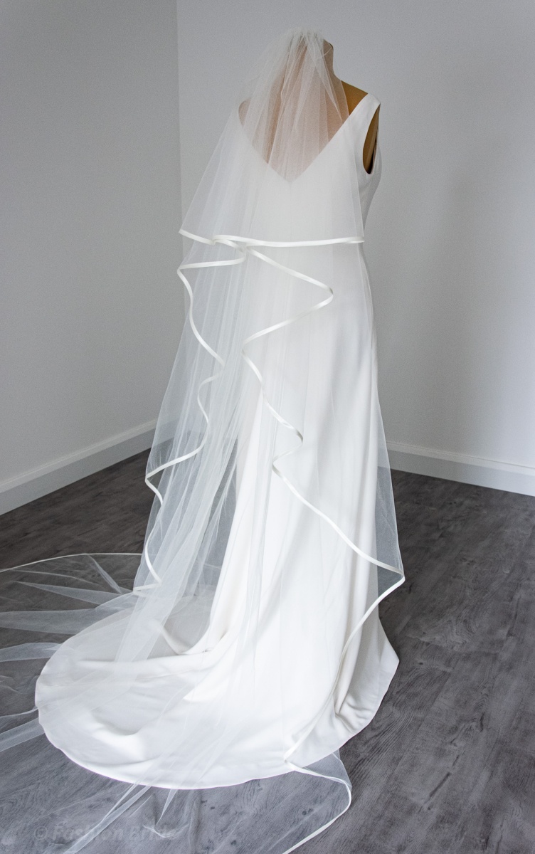 Description: Long two-tier Veil with satin ribbon edge in a wide 280 cm width.