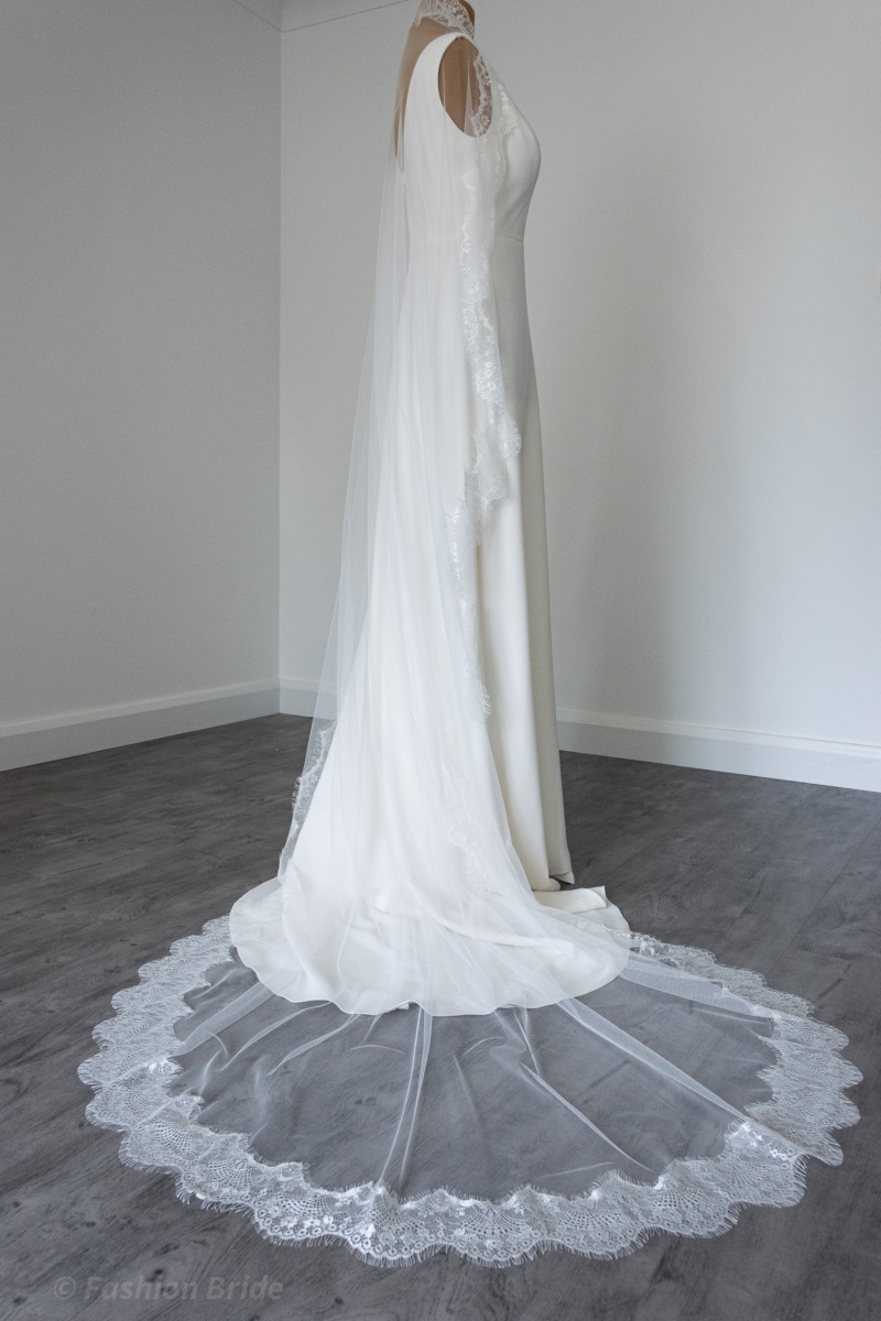 length: The design of the Veil is available in two most popular lengths 94”/ 240 cm Chapel Length Veil or 114” / 290 cm Cathedral Length Veil