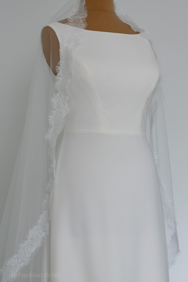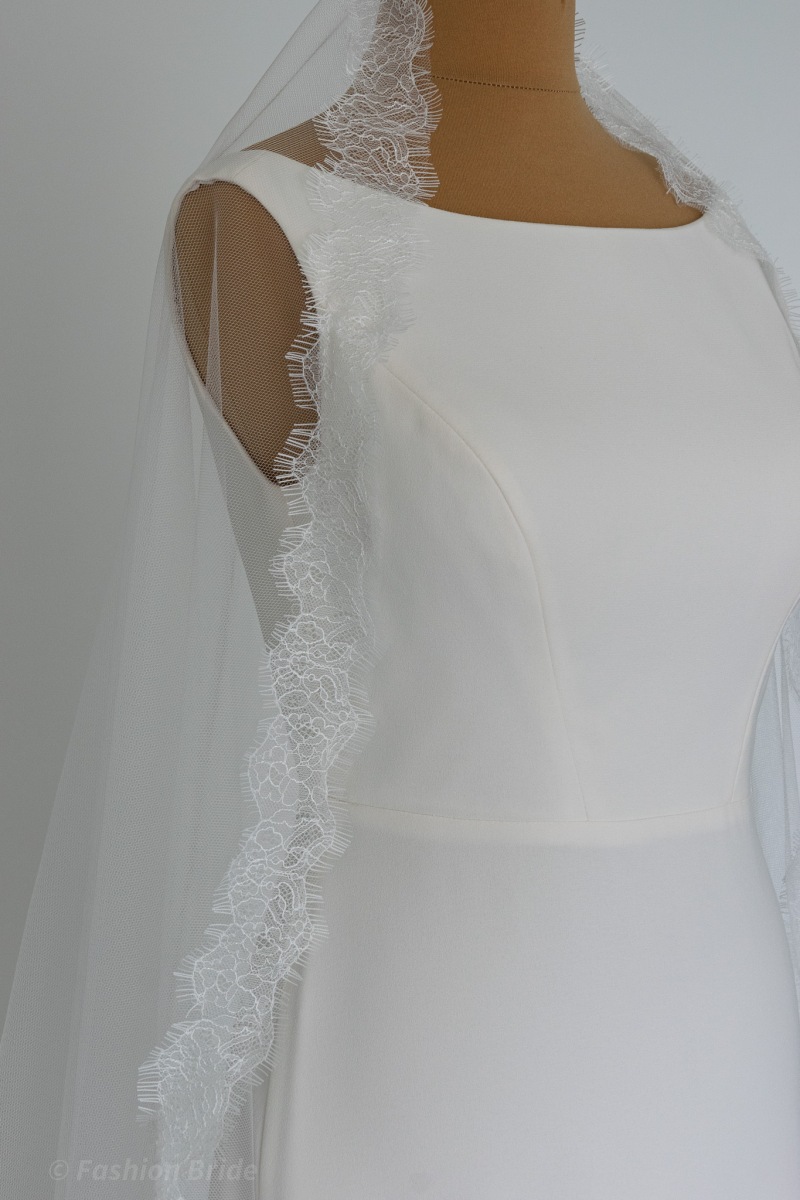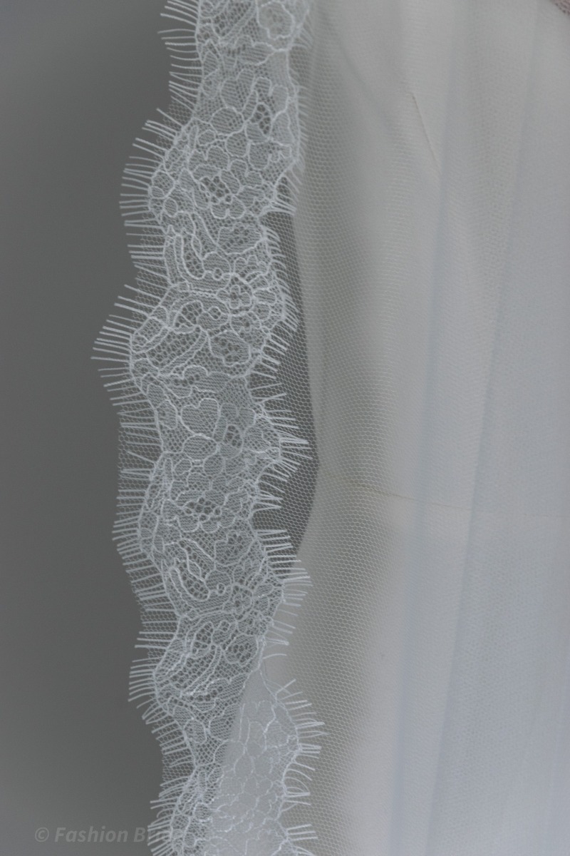 Description: Mantilla style lace-edged tulle veil. The lace width is 6 cm, Ivory colour.