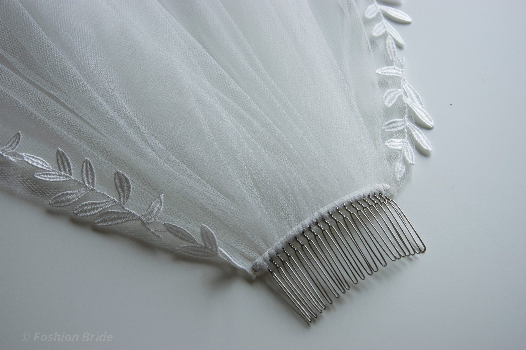Description: Short one-tier tulle Veil with leaf lace edge finish in Ivory colour.