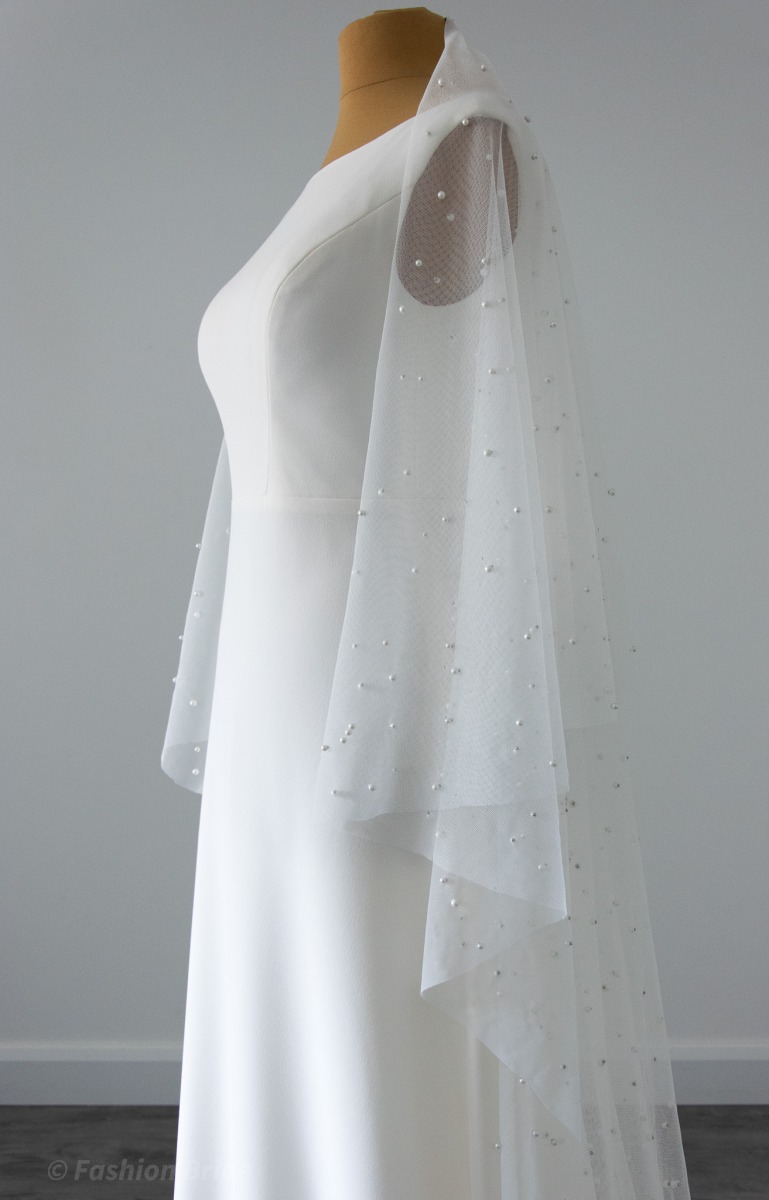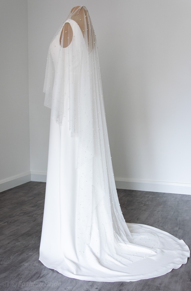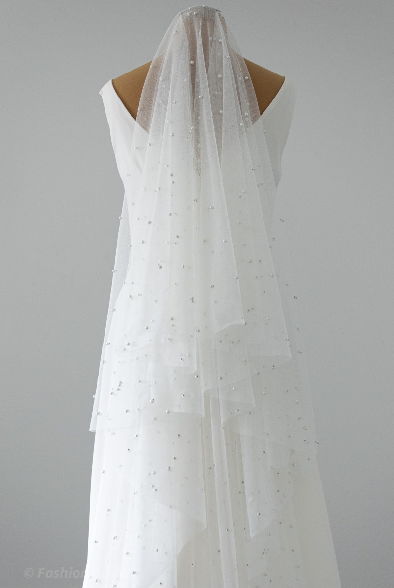 Description: Long Pearl tulle Veil, two-tier.