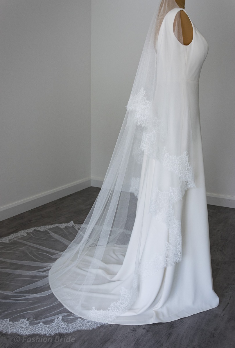 length: The design of the Veil is available in two most popular lengths 94”/ 240 cm Chapel Length Veil, or 114” / 290 cm Cathedral Length Veil